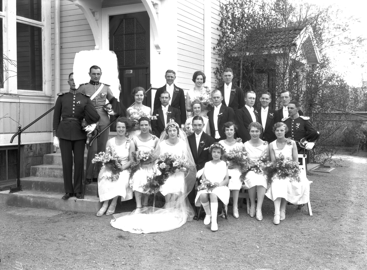 Brudparet Karlkvist med brudfölje i major Nauckhoffs trädgård