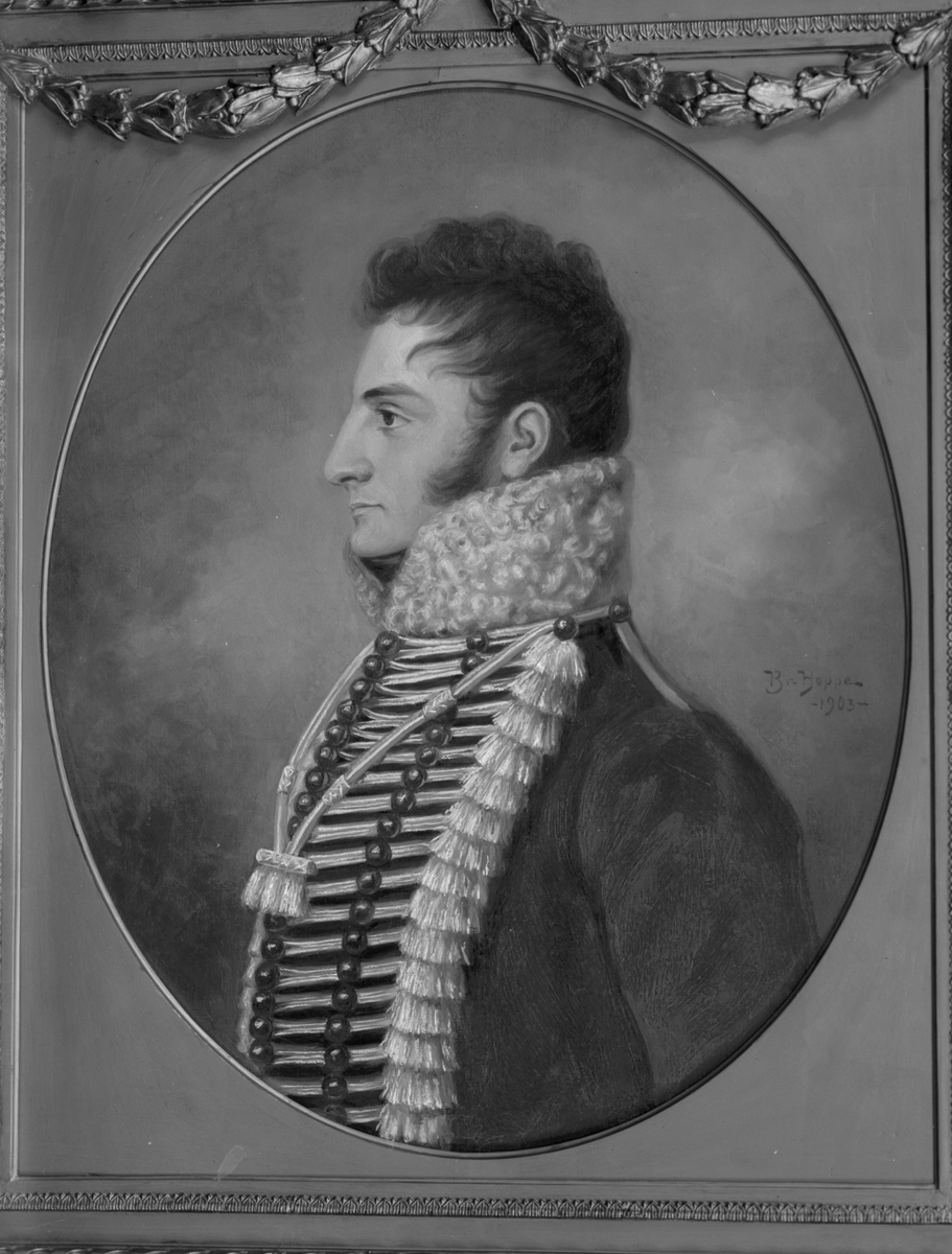 Familjen de Geer, Lövstabruk. De Geer köpte Lövstabruk 1643 och var i familjens ägo till 1986. Tavlan signerad med "B. Hoppe 1903"