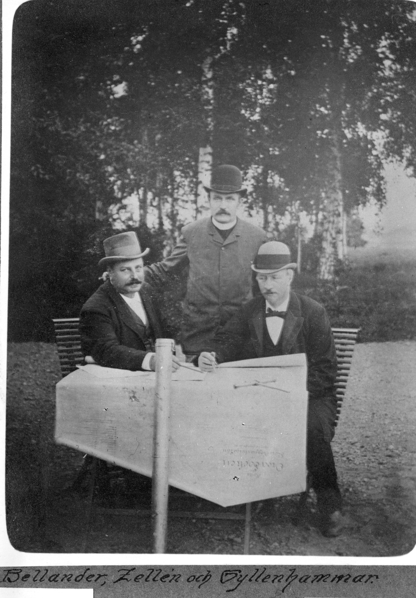 Bellander, Zellén och Gyllenhammar. Korsnäs AB. De tre herrarna genomförde en av de största skogsförrättningarna inom svensk skog. Bror Bellander till vänster i bild.