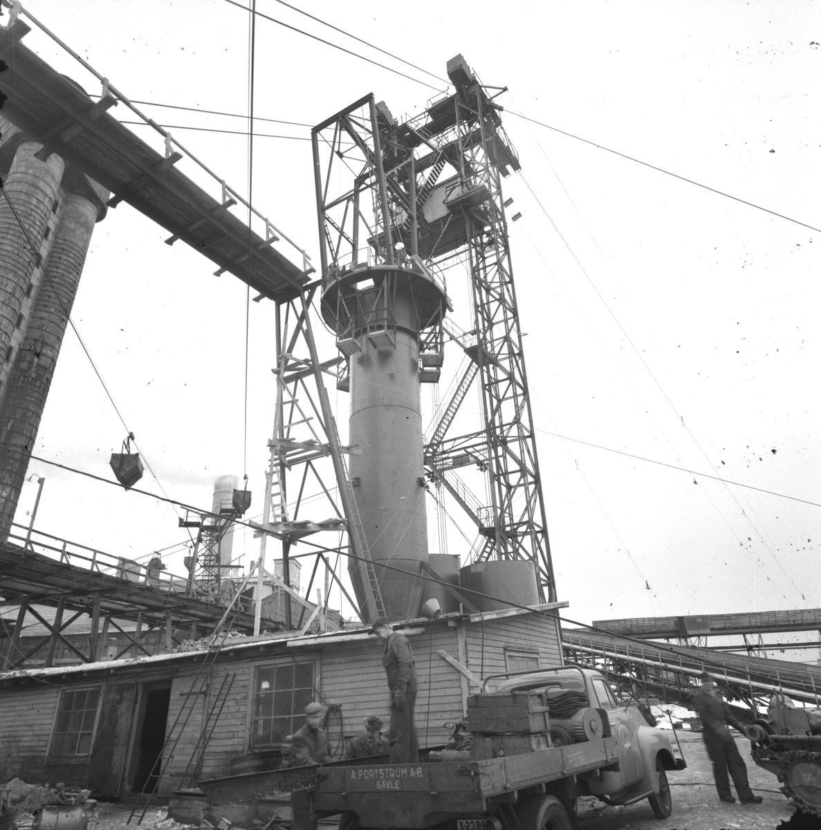 Bygge av transporttorn, Portströms Mekaniska Verkstad. Korsnäs AB. Den 31 januari 1961