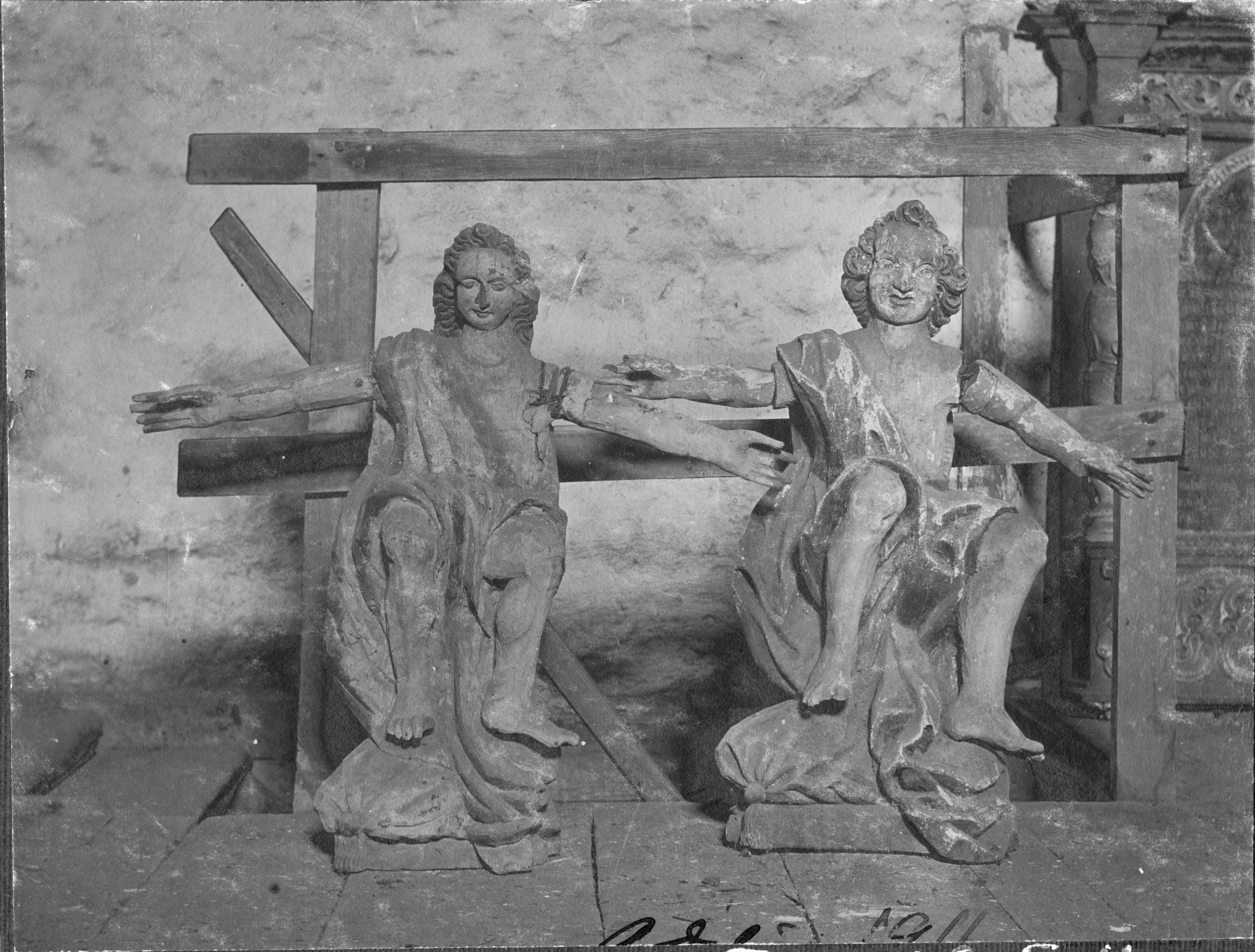 Två stycken Heliga män, av snidad furu, omkring 1700.