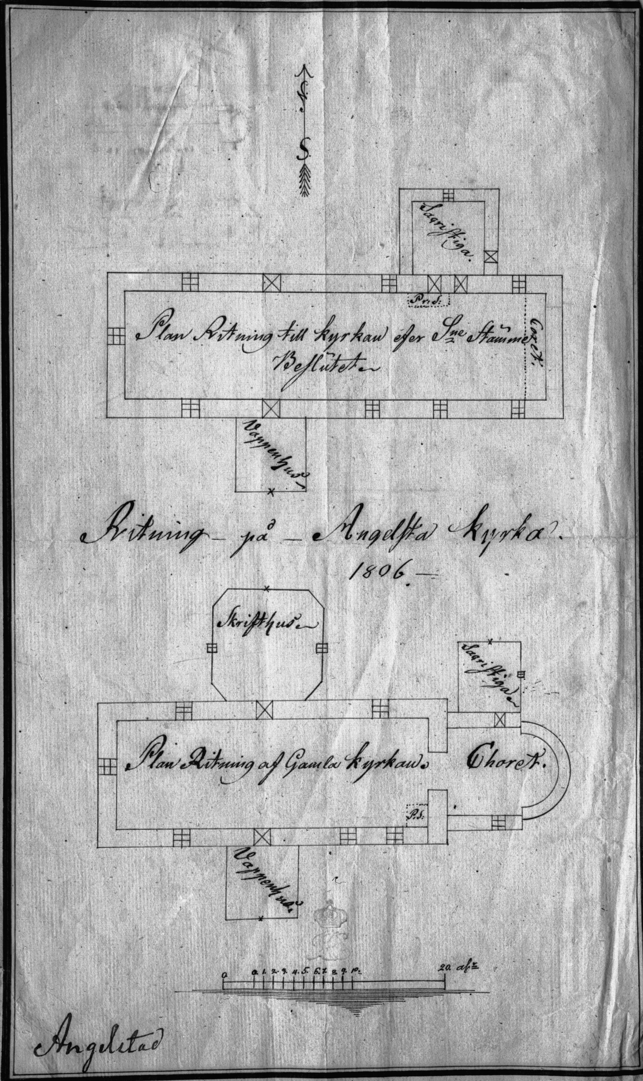 Planritning. Foto av ritning från Kungliga Byggnadsstyrelsen.