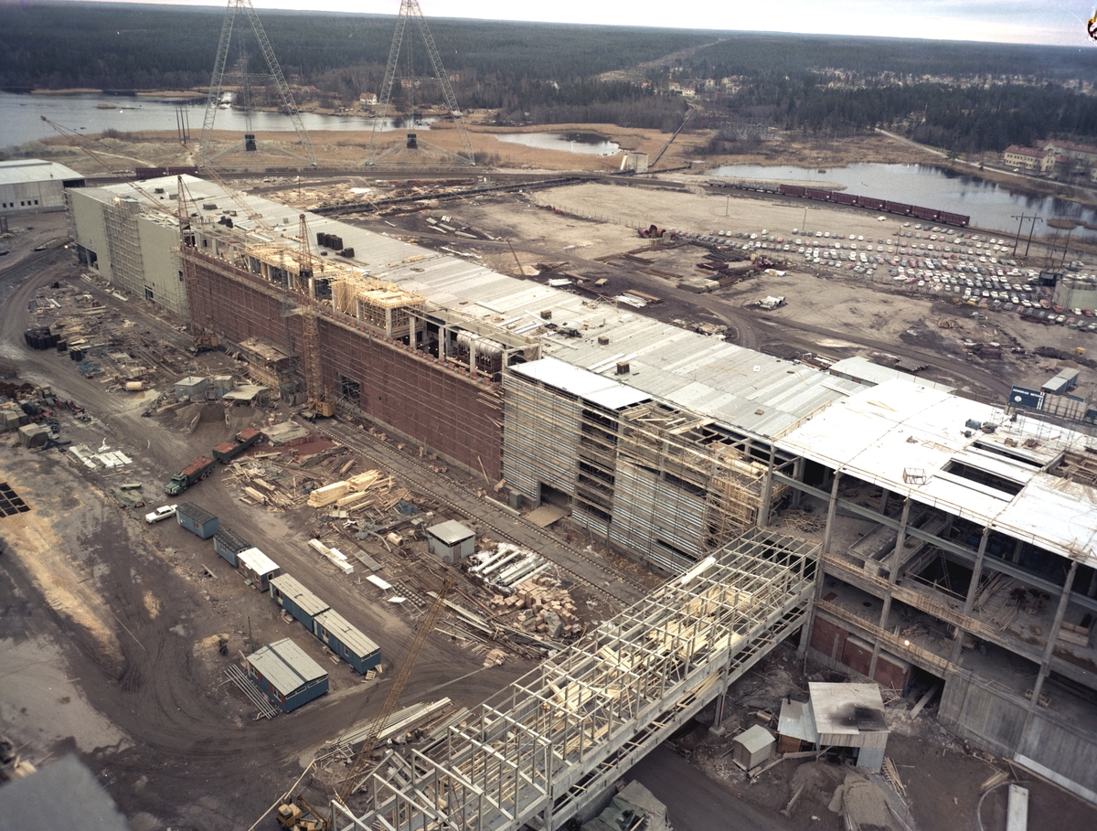 Utsikt från taket på sodatornet. Bygge av ny Pappersfabrik. Korsnäs AB. Den 27 november 1967