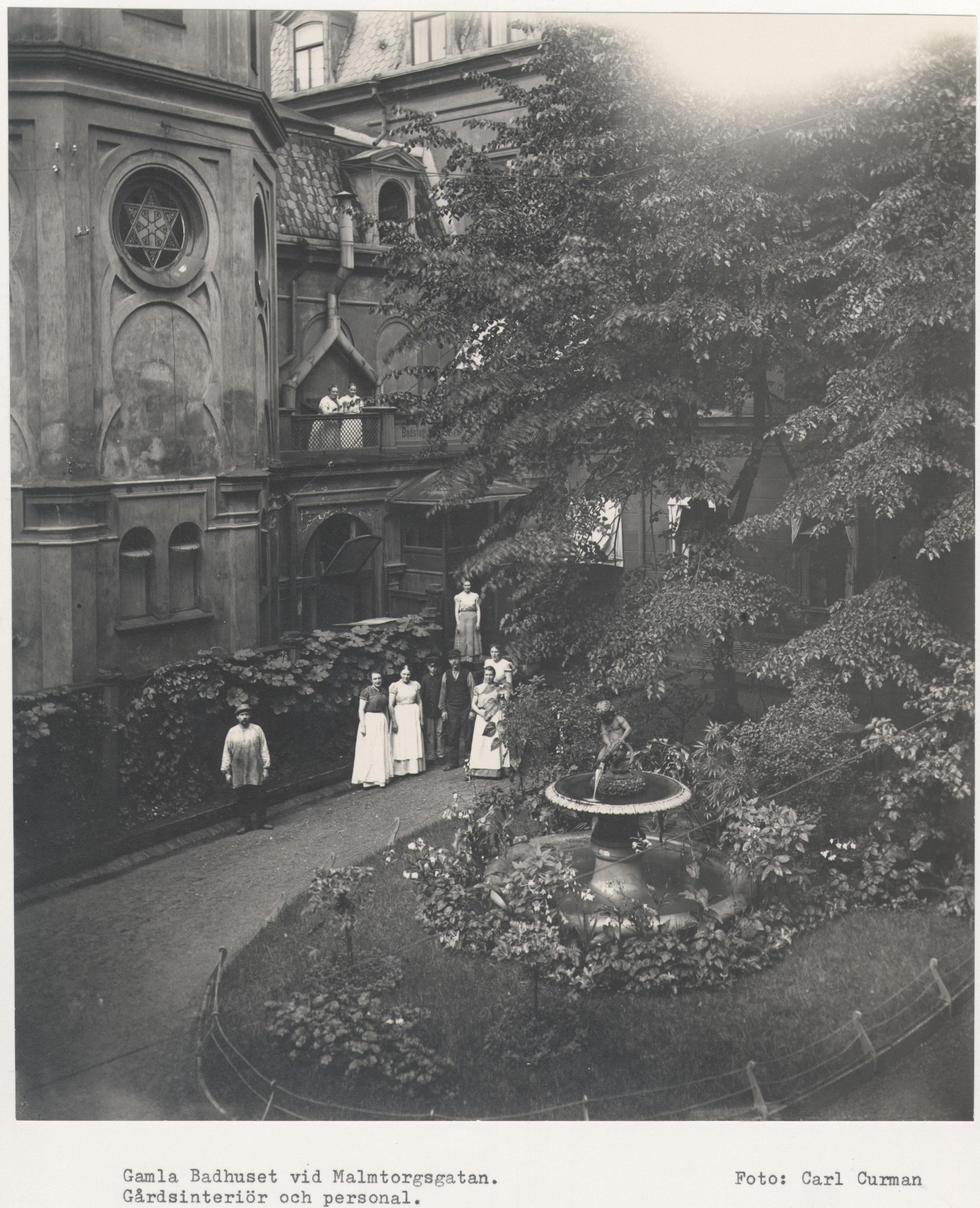 Gamla badhusets gård vid Malmtorgsgatan, med personalen.