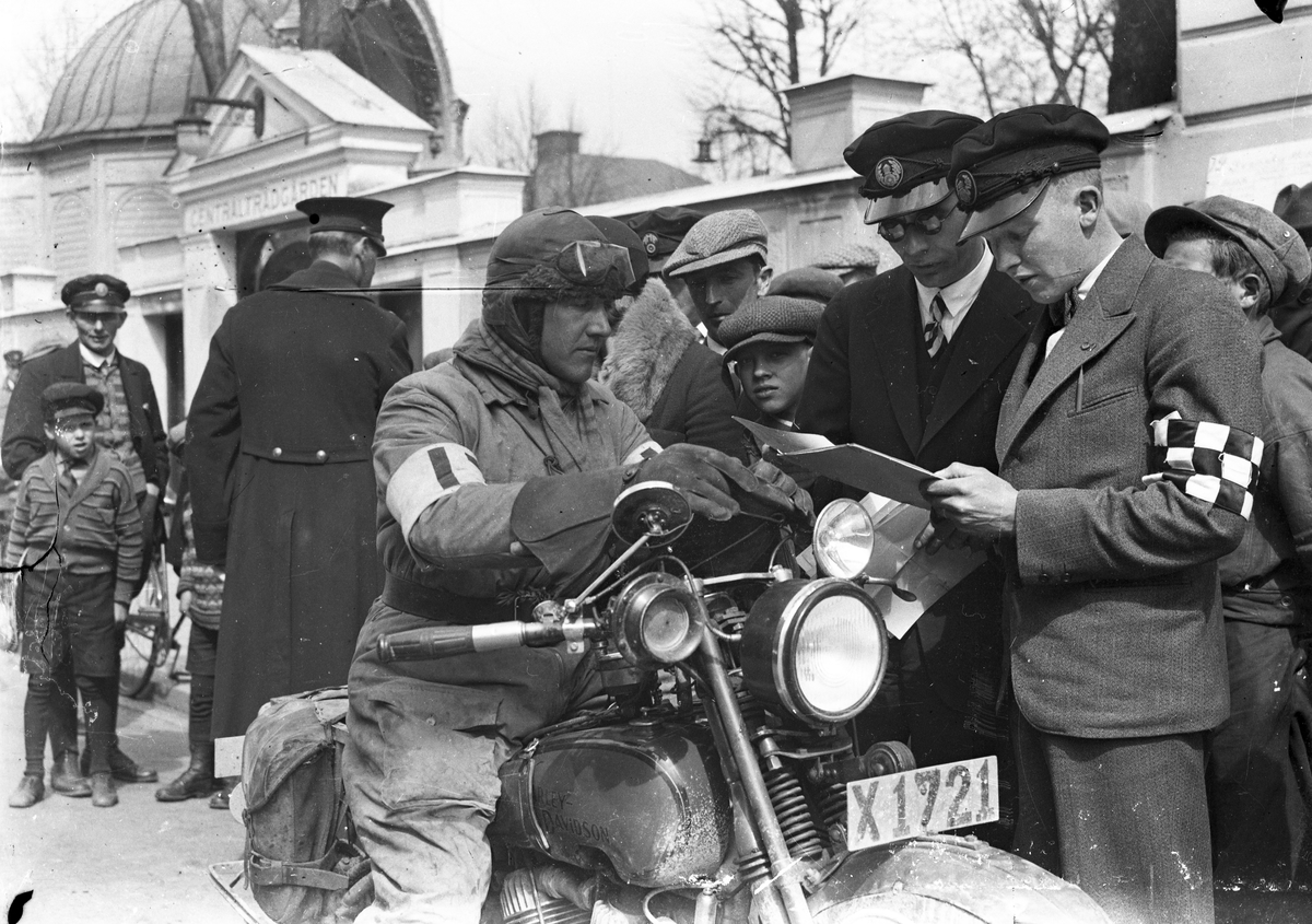 Titel: Motorcykeltävling. Vid Centralträdgården (Grand Central Hotell)