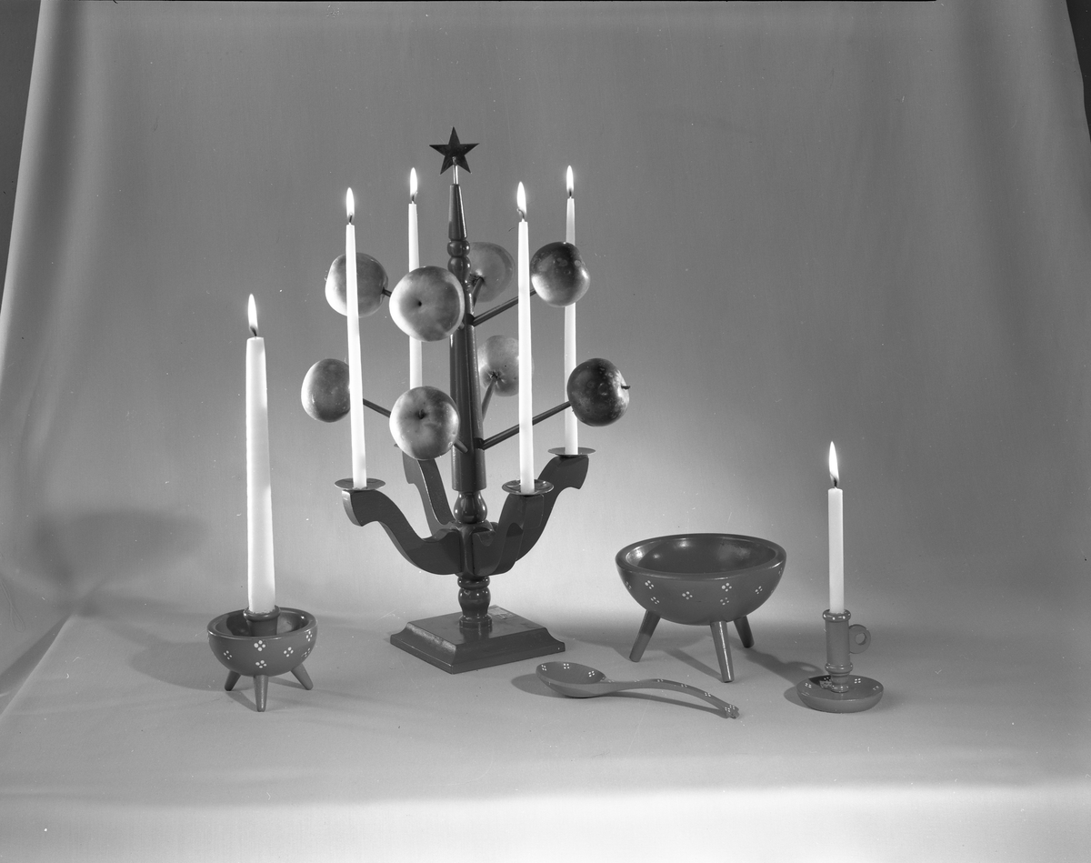 Ljusstakar, träskål och träsked. Den 18 oktober. Ahrnebergs