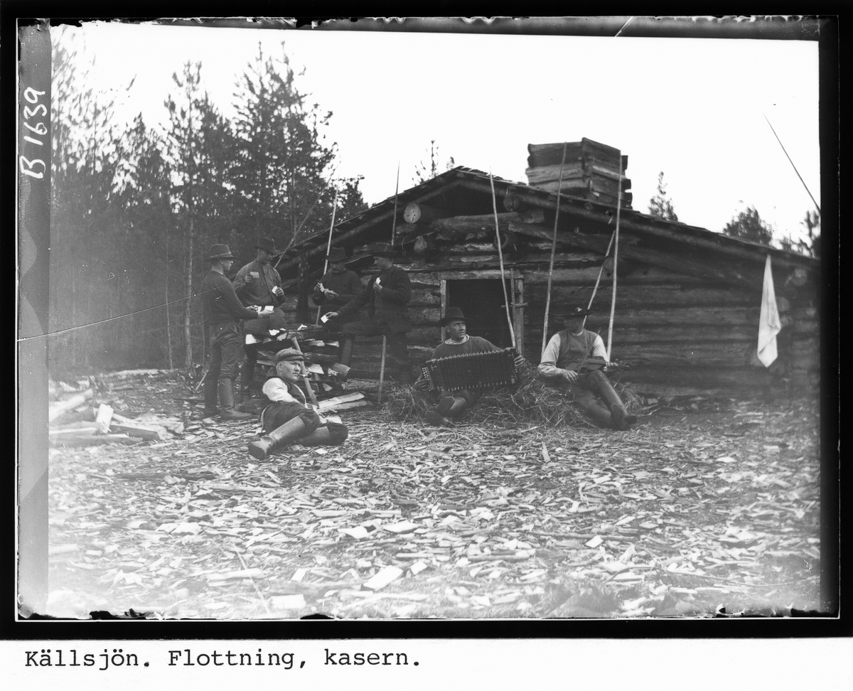 Källsjön. Flottarlag vid Källsjökasern. Mannen liggande längst fram är Ruben Hällberg.