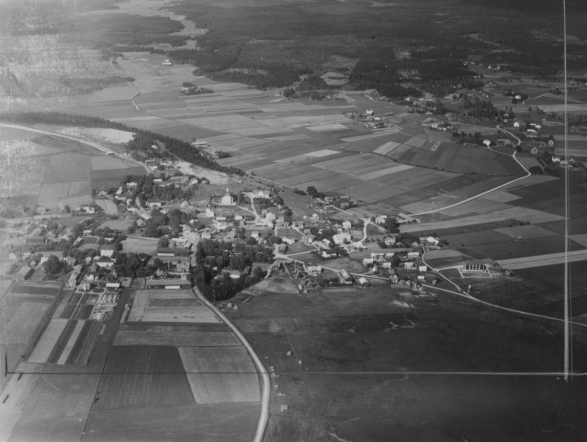 Flygfoto över centrala Hedesunda. Foto 1932.