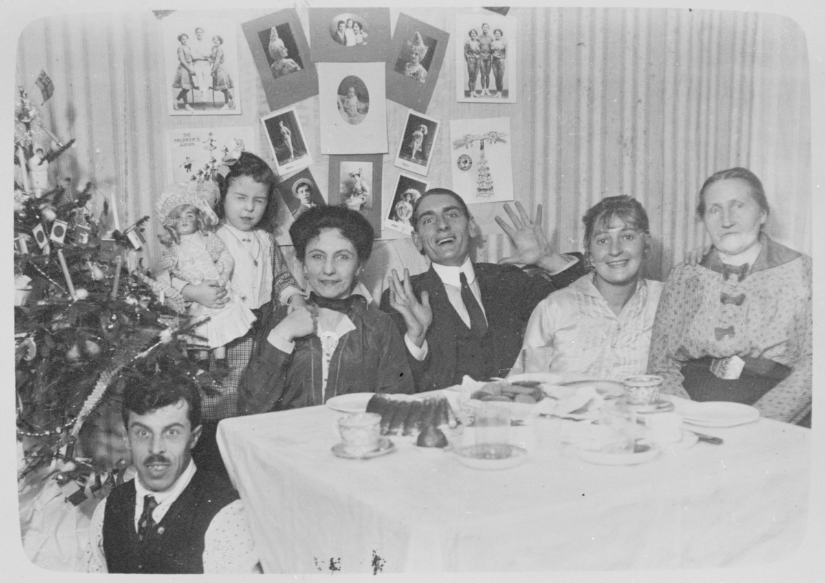 La Bella Ingeborg, Charles Bazola, dottern Hélenè och mormodern Brita Gröning runt julbordet med gäster.