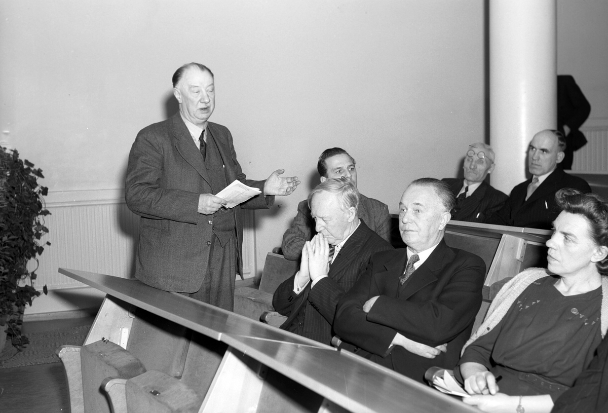 Finansminister Wigfors, Folkets Hus. 1948. Reportage för Arbetarbladet.