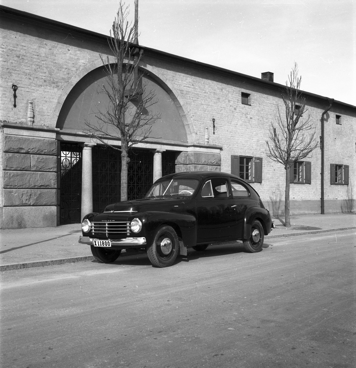 Personbil Volvo PV 444. Reg X11800. Bilden tagen utanför Strömvallen Kungsbäcksvägen Gävle i maj 1947.