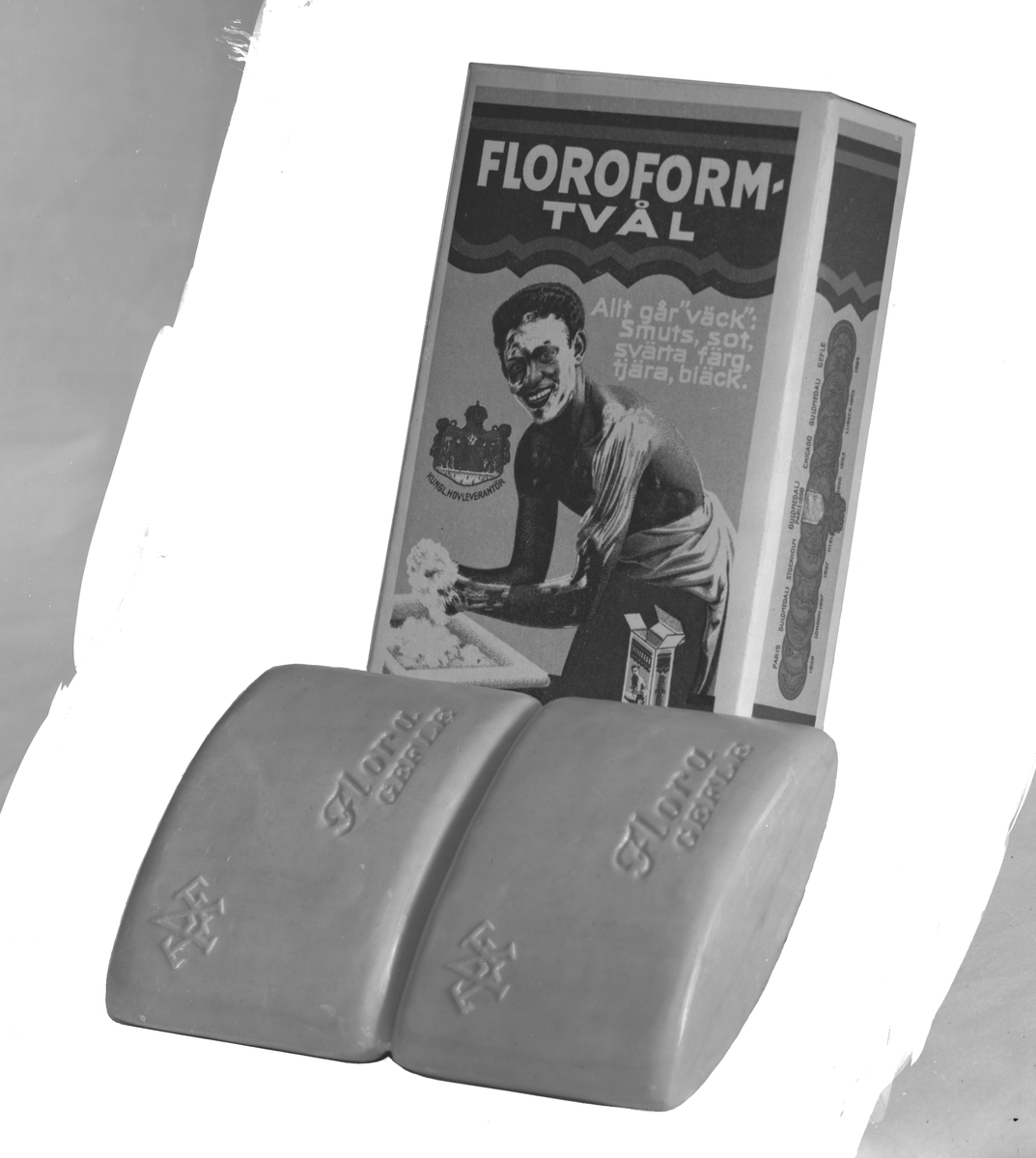 Tekniska AB Flora. "Floroform tvål. Allt går väck; smuts, sot, svärta, färg, tjära, bläck".