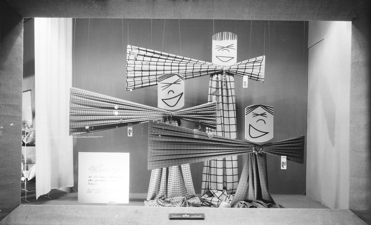 Konsum Alfa Varuhuset. Skyltfönstertema "Tyger". Den 2 februari 1955.