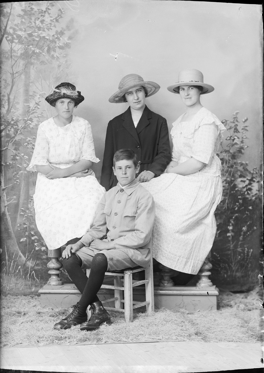 Fridny Andersson med två kvinnor och en pojke, Östhammar, Uppland 1922