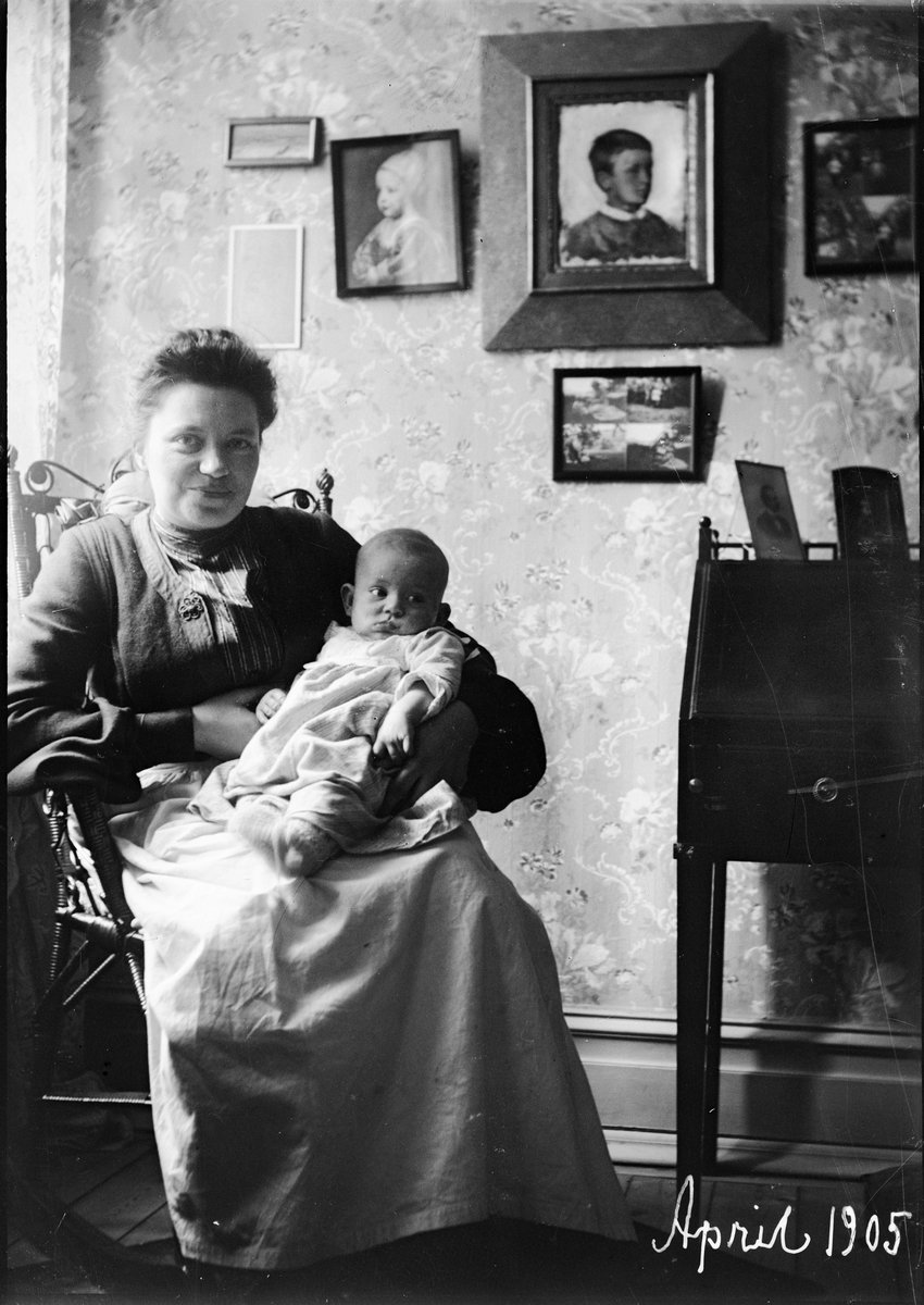 Christiane Liljefors med sonen Alf i hemmet i Göteborg, Sverige 1905