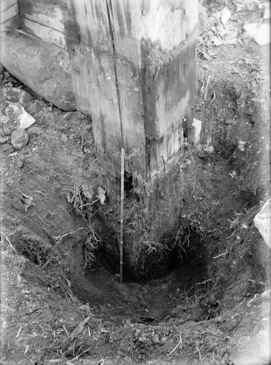 Detalj av portliderstolpe hörande till Lälundalidret, nedmonterad inför flytten till friluftsmuseet Disagården