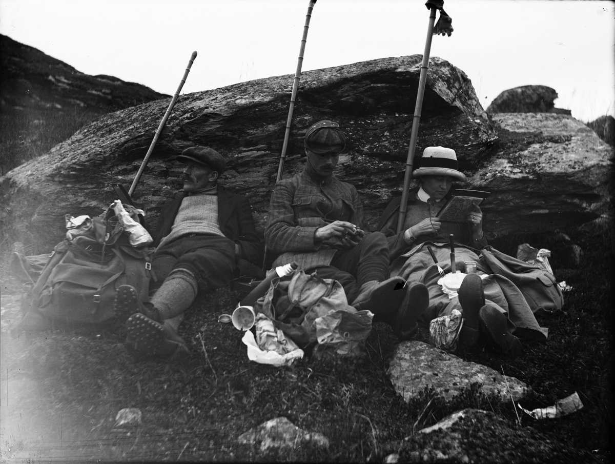 Sannolikt Josef Ärnström med vänner på vandring i fjällen, Kiruna, Lappland