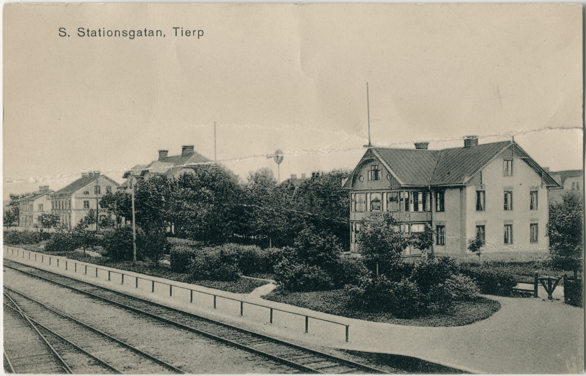 Vykort - Södra Stationsgatan, nuvarande Järnvägsesplanaden, Tierp, Uppland