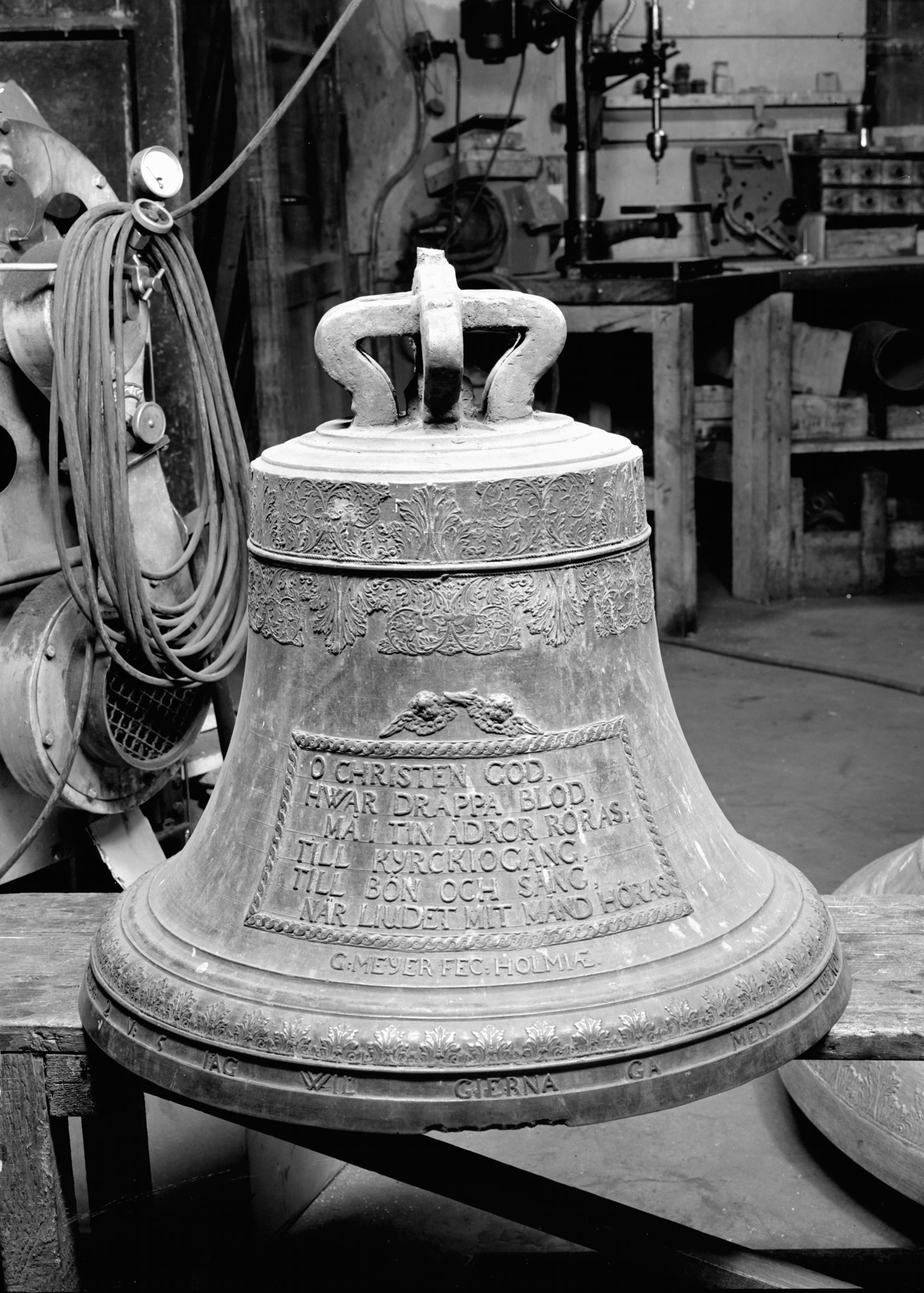 Beskrivning: Lillklockan, gjuten 1750 av Gerhard Meyer d. y., Stockholm.