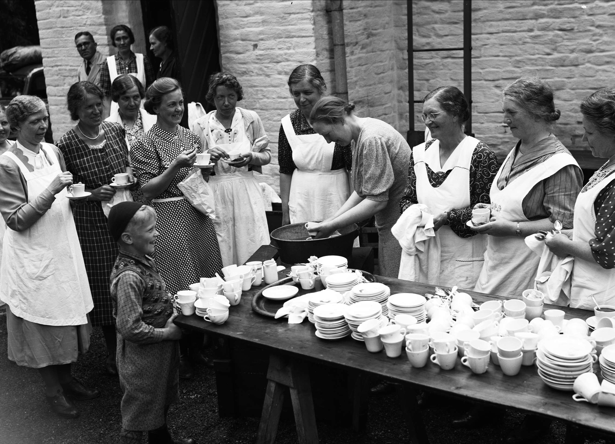 "Missionskyrkans damer i färd med kaffebestyren" på De gamlas dag, Flottsundskyrkan, Graneberg