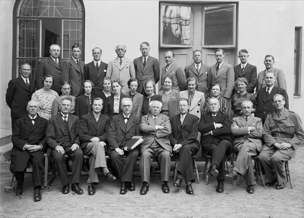 Grupporträtt - män och kvinnor utanför byggnad, Uppsala