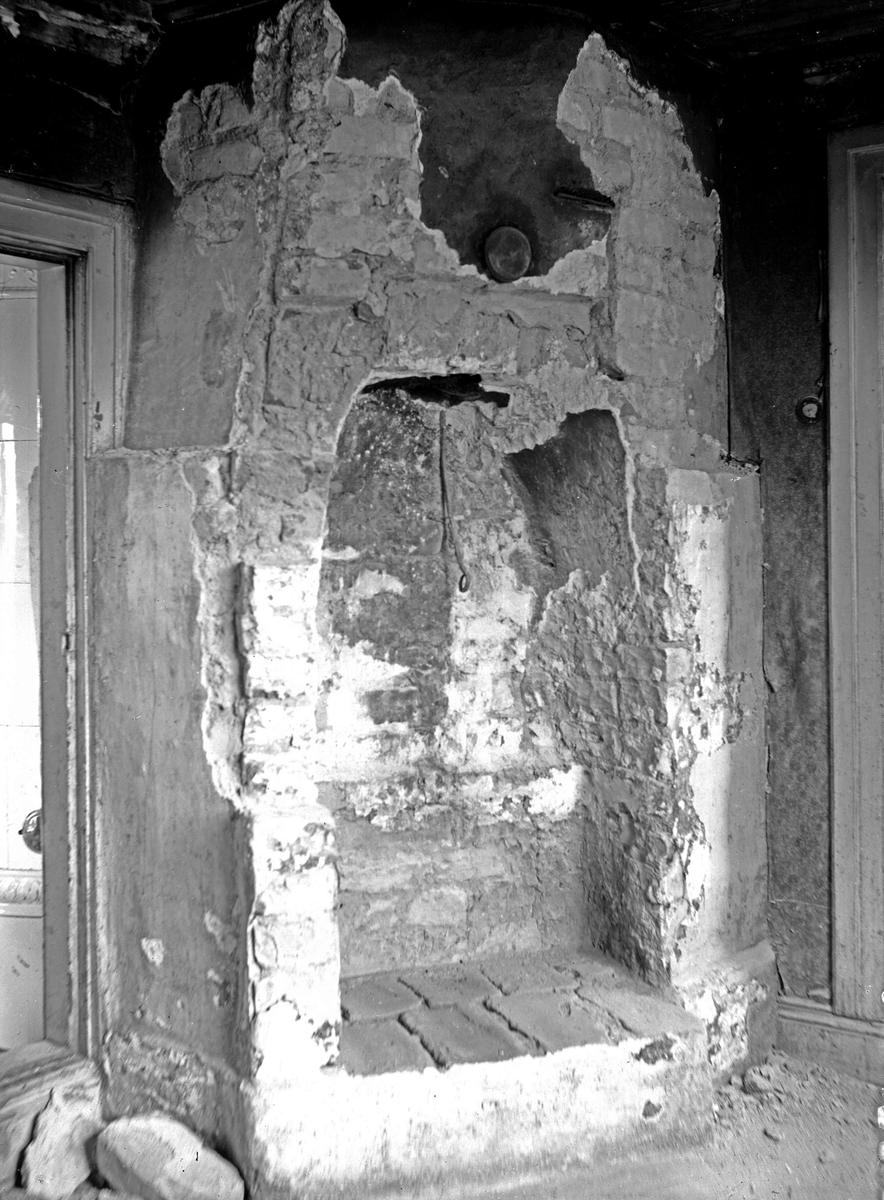 Spis under nedmontering i helgdagsstuga - nu på friluftsmuseet Disagården - på ursprunglig plats i Gränby, Björklinge socken, Uppland