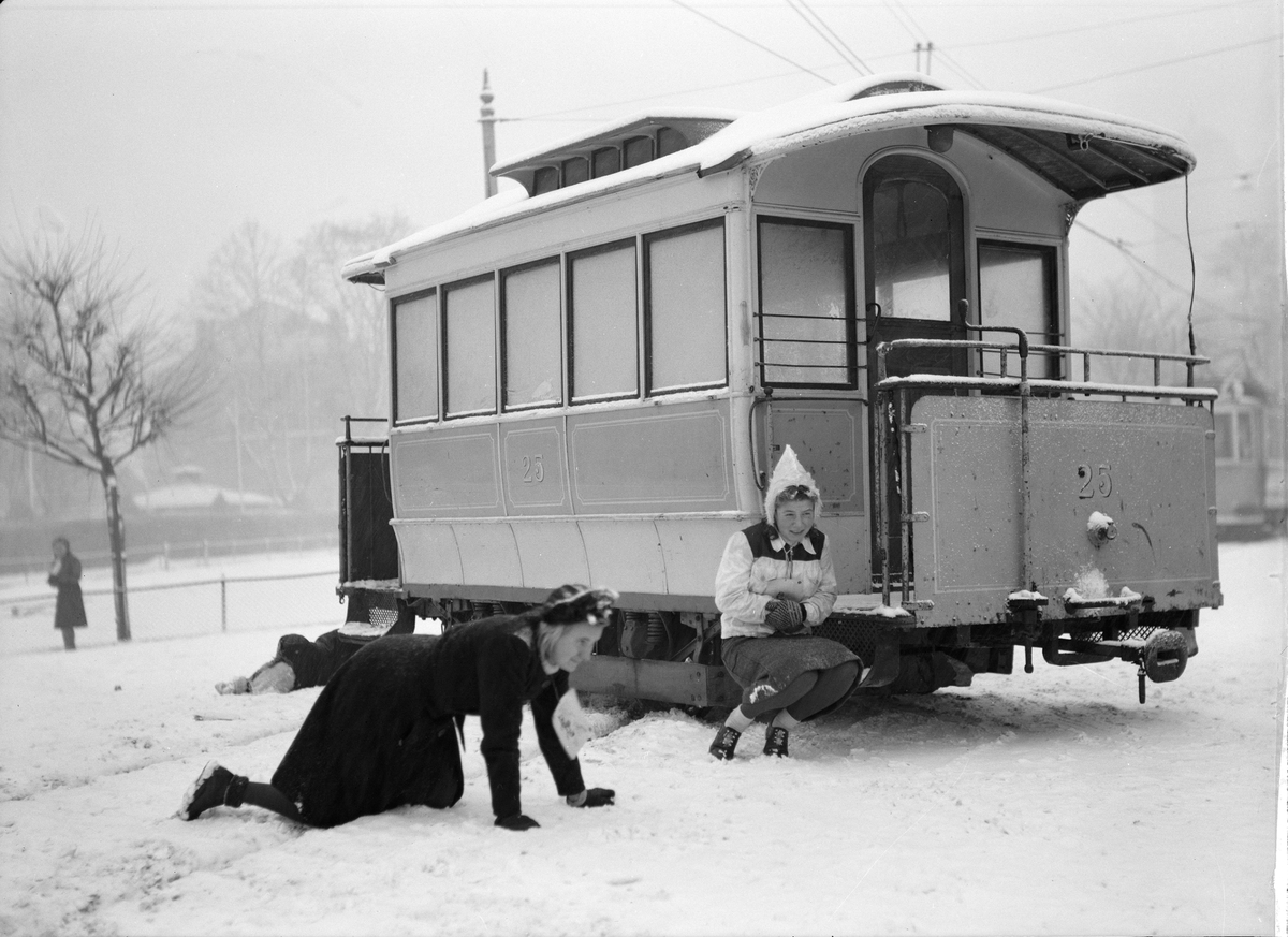 "Luftskyddsövningen utomordentligt realistisk" - barn agerar markörer vid spårvagn, Svandammen, Uppsala december 1942