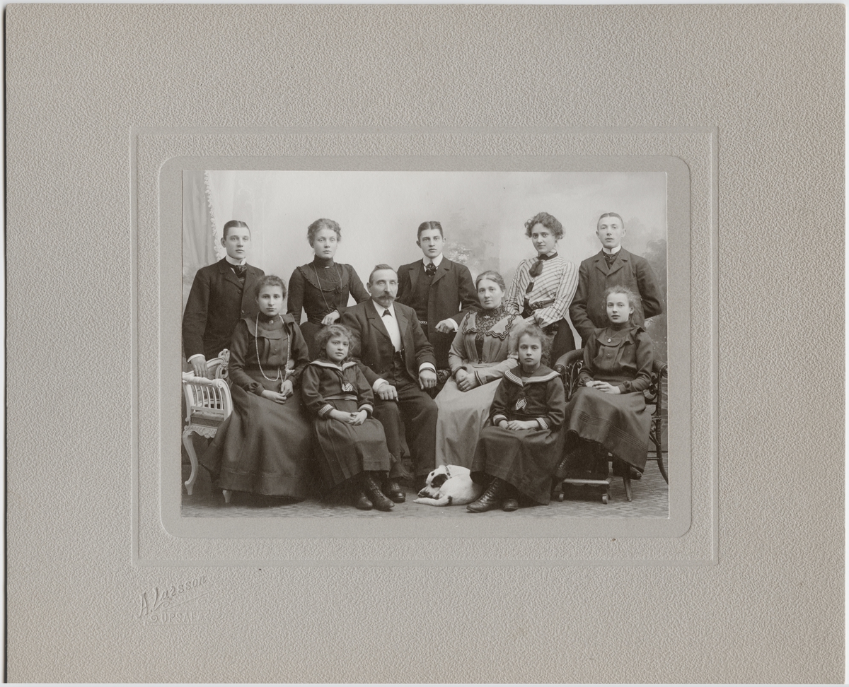 Hulda och Carl Nyman, Uppsala, i kretsen av sina barn på parets silverbröllopsdag 1903