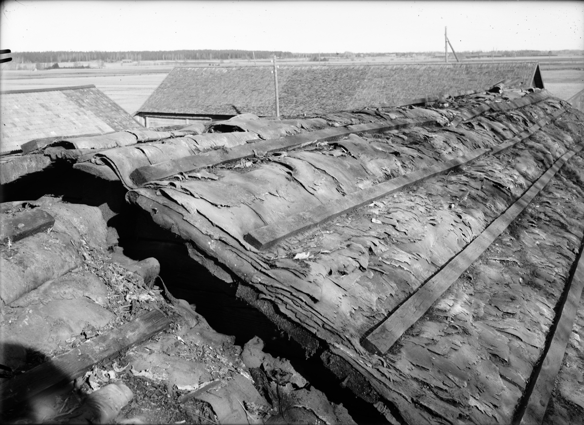 Nävertak på loftbod - nu på friluftsmuseet Disagården - under nedmontering i Gränby, Björklinge socken, Uppland