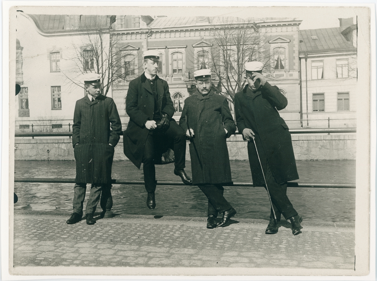 Fyra manliga studenter vid Fyrisån, Uppsala