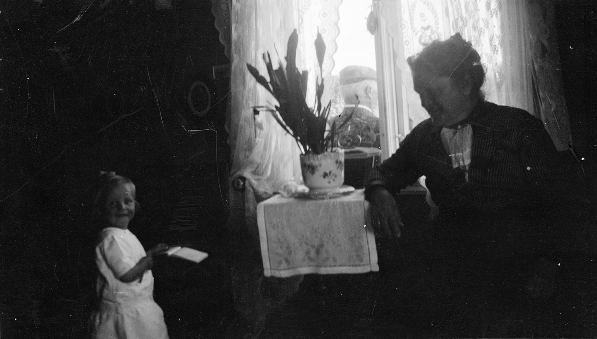 Marit Liljefors med sin mormor Pauline Egelind Petersen, sannolikt hemma hos mormor i "Grönvold", Stavanger, Norge