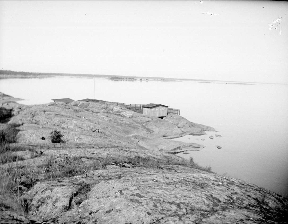 Kallbadhus vid stranden i Öregrund, Uppland, juli 1924