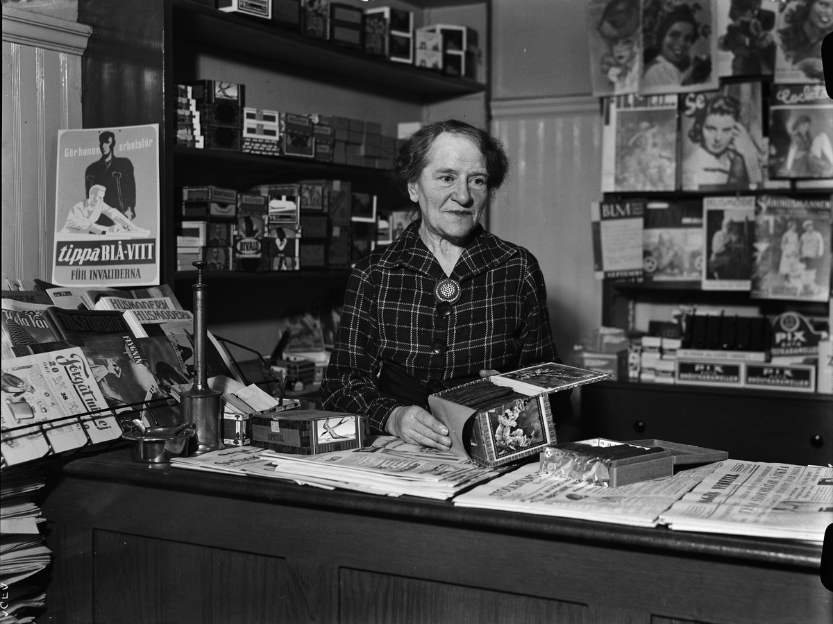Sophie Erikssons cigarrhandel 50-årsjubilerar, Alma Eriksson i tobaksaffären, Sysslomansgatan 13