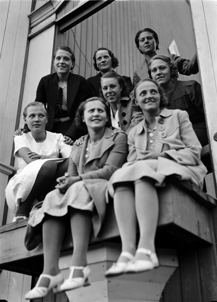 Unga kvinnor i publiken på korporationssimningen i Fyrisbadet