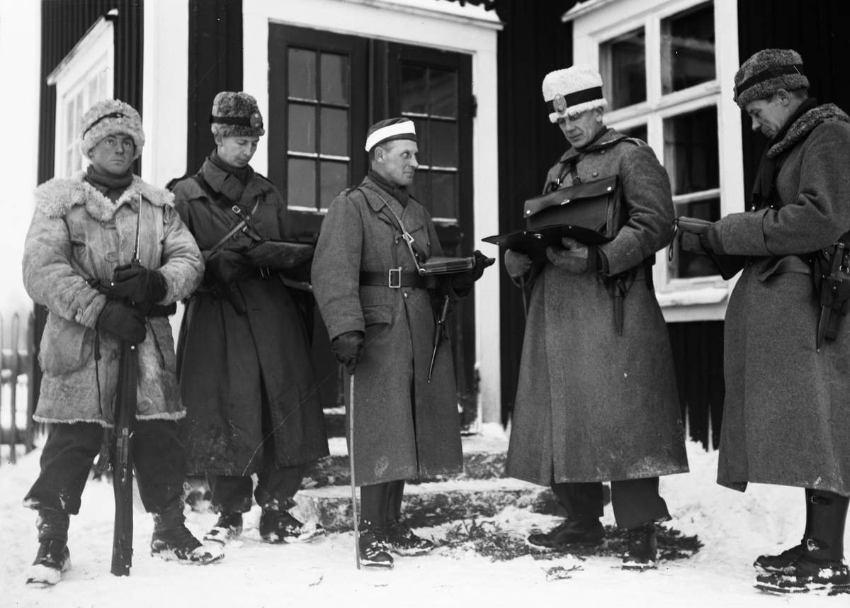 "2,500 man på upländsk manöver. Realistisk strid under morgontimmarna i dag i trakten av Järlåsa", Uppland december 1942