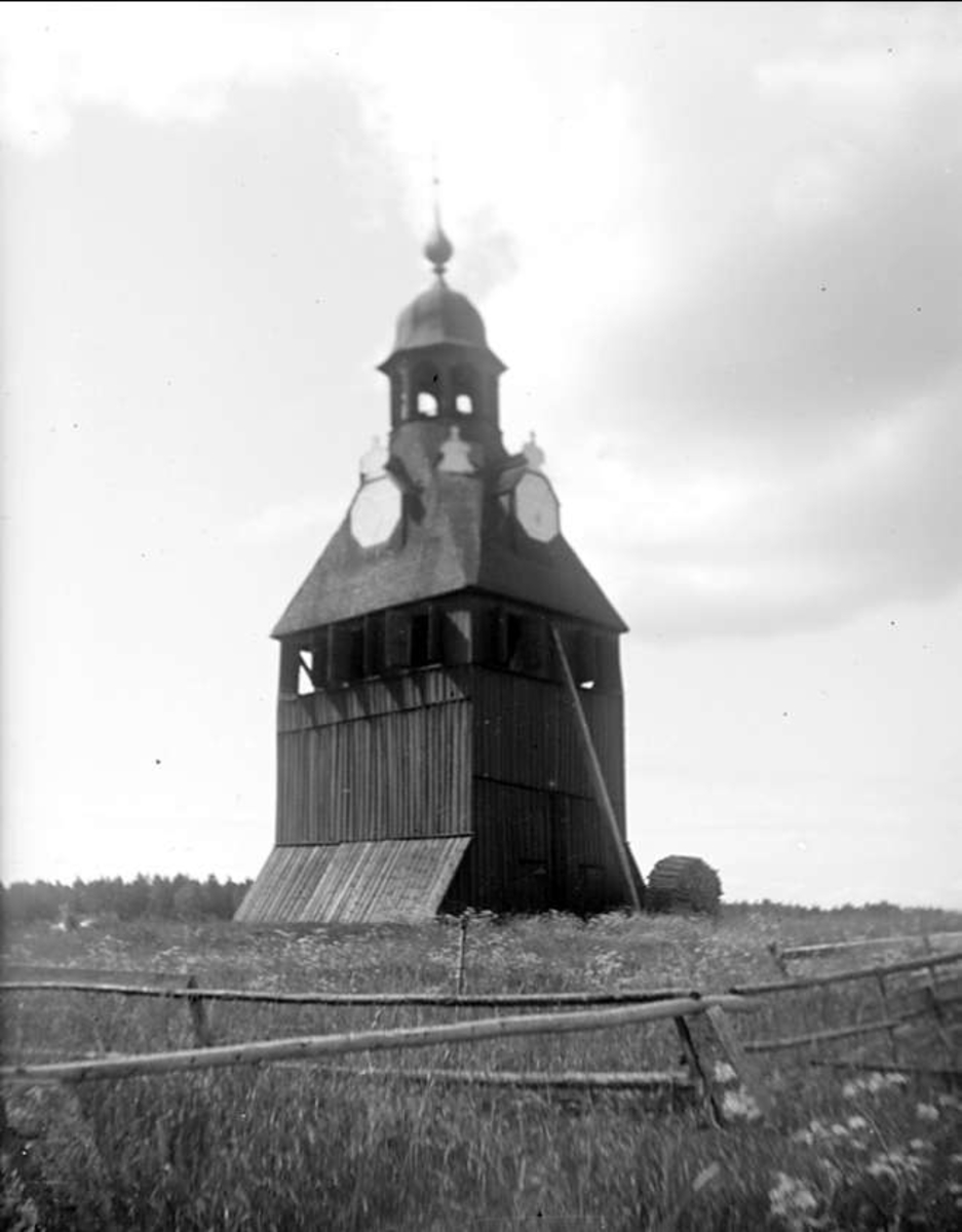 Klockstapeln vid Veckholms kyrka, Veckholms socken, Uppland i juni 1925