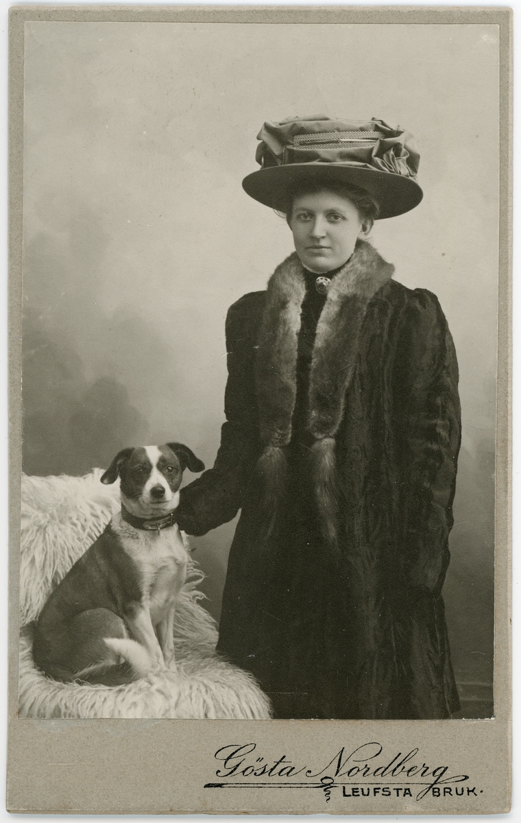 Kabinettsfotografi - kvinna klädd i ytterkläder, Lövstabruk