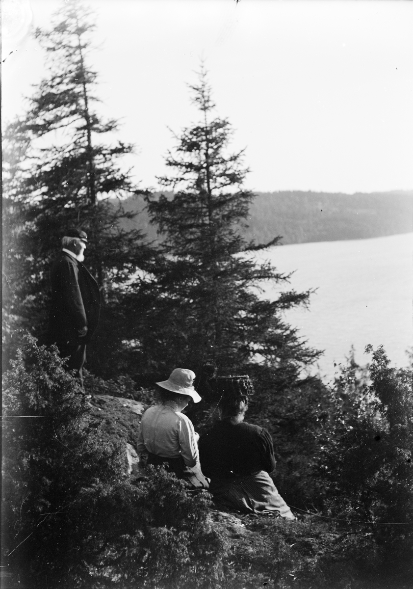 Christiane Liljefors med sina föräldrar, Roland Petersen och Pauline Egelind Petersen sitter på berget och betraktar fjorden, i Norge