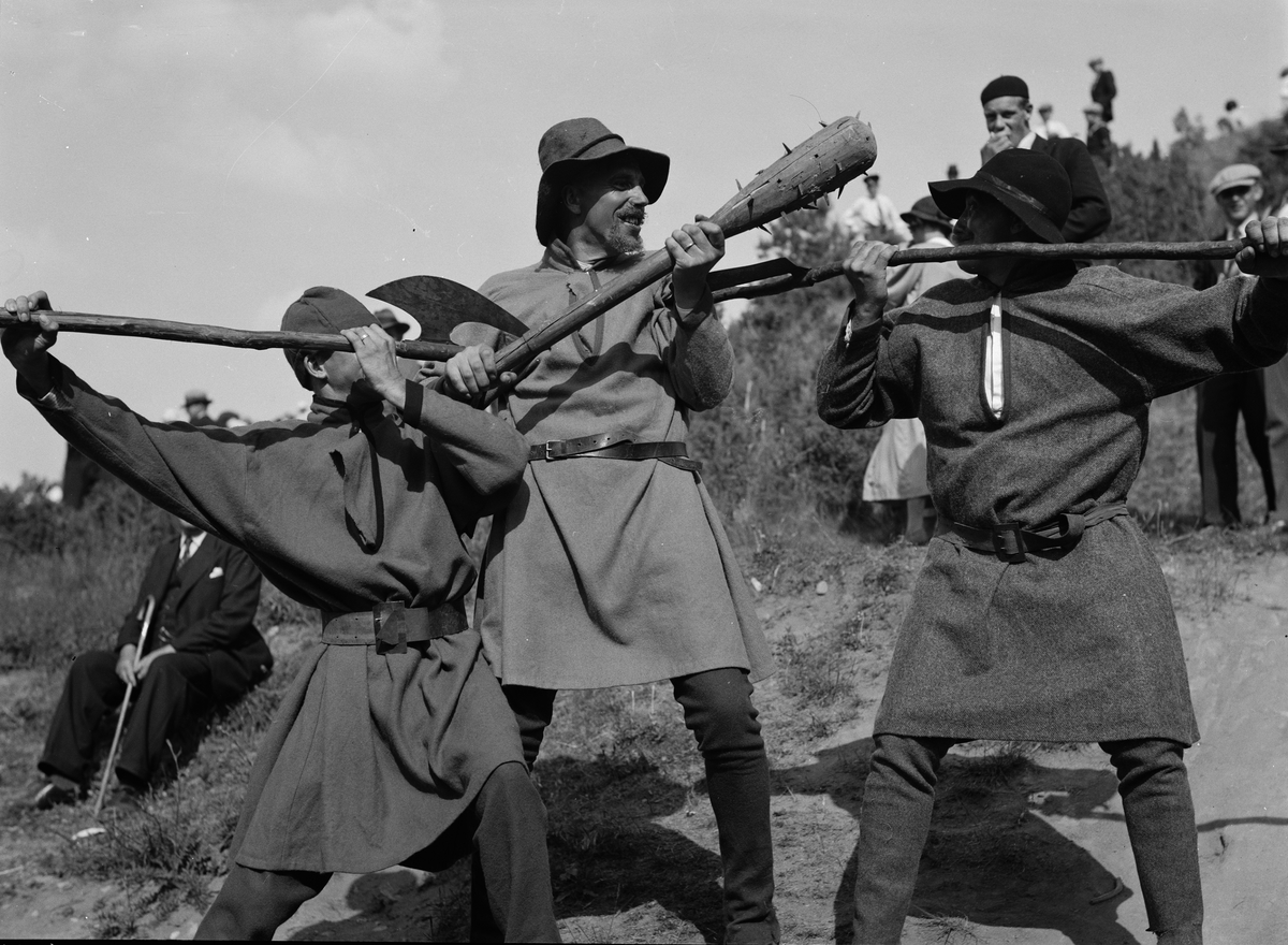 Deltagare i festspelet på Svenska Landsbygdens Ungdomsförbunds riksting i Gamla Uppsala