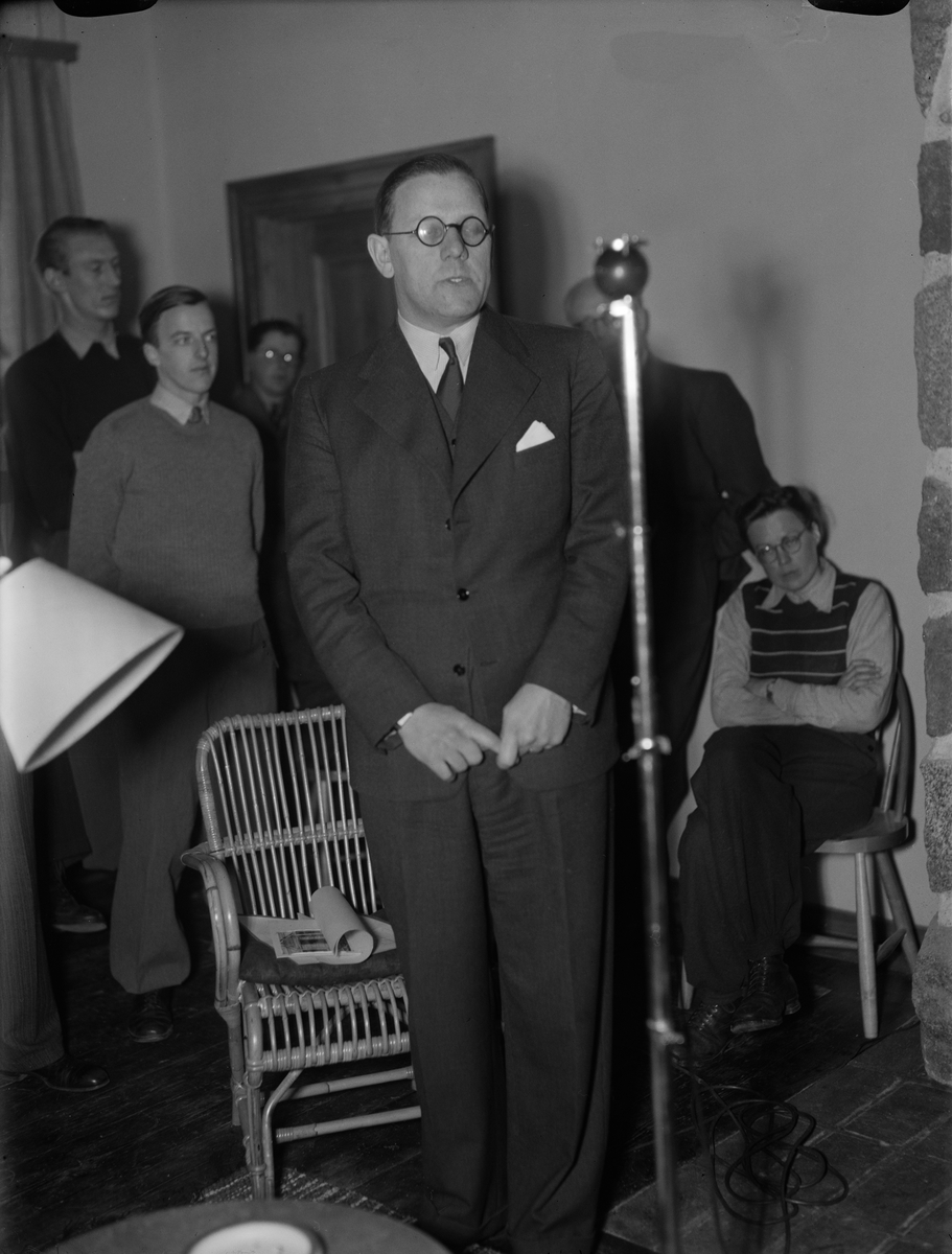 Landsantikvarie Nils Sundquist berättar om gårdens historia vid invigningen av Vårdsätra friluftsgård