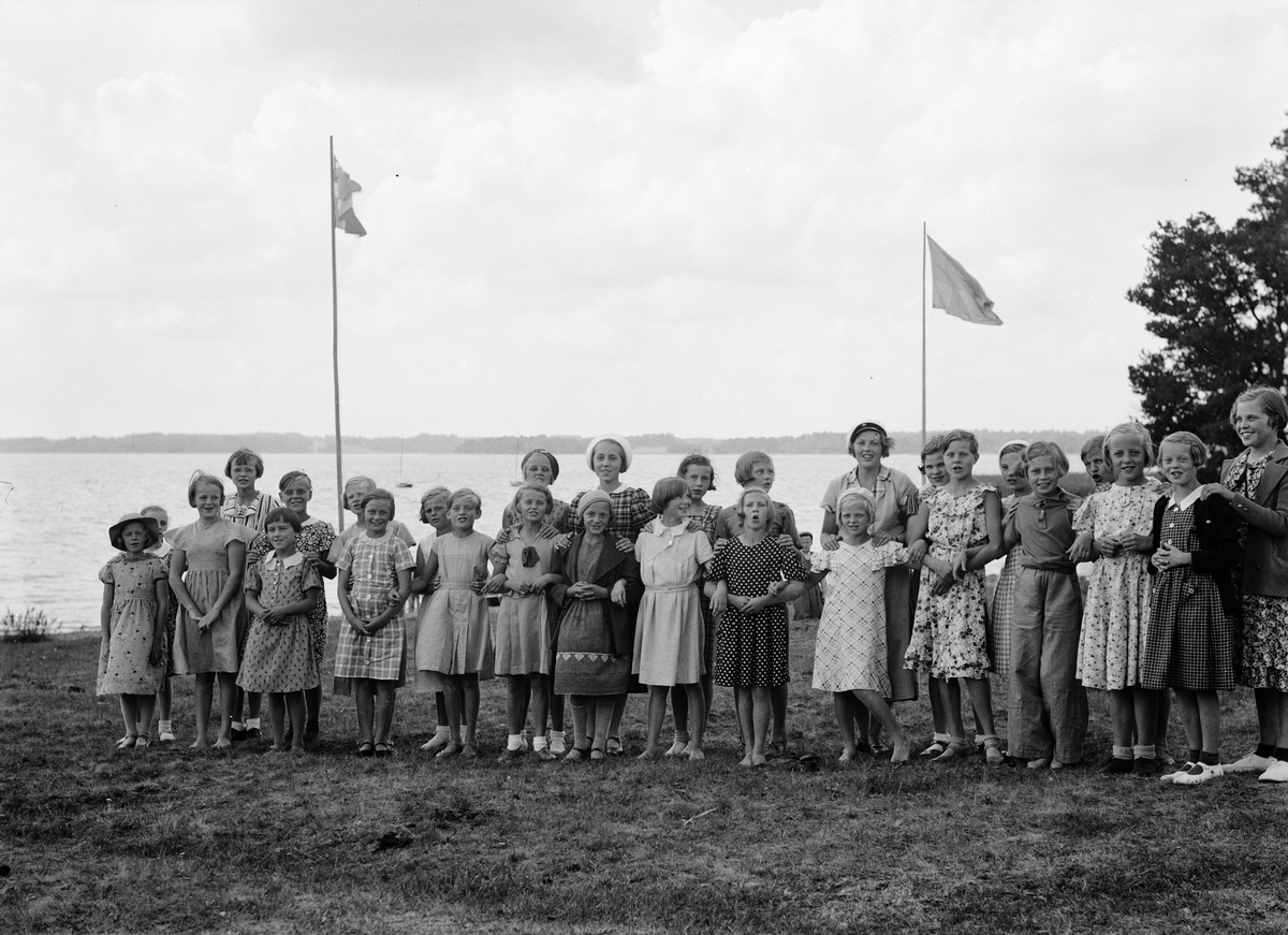 Flickor på Svenska Motorklubbens uppsalaavdelnings utflykt till Fredrikslunds gård