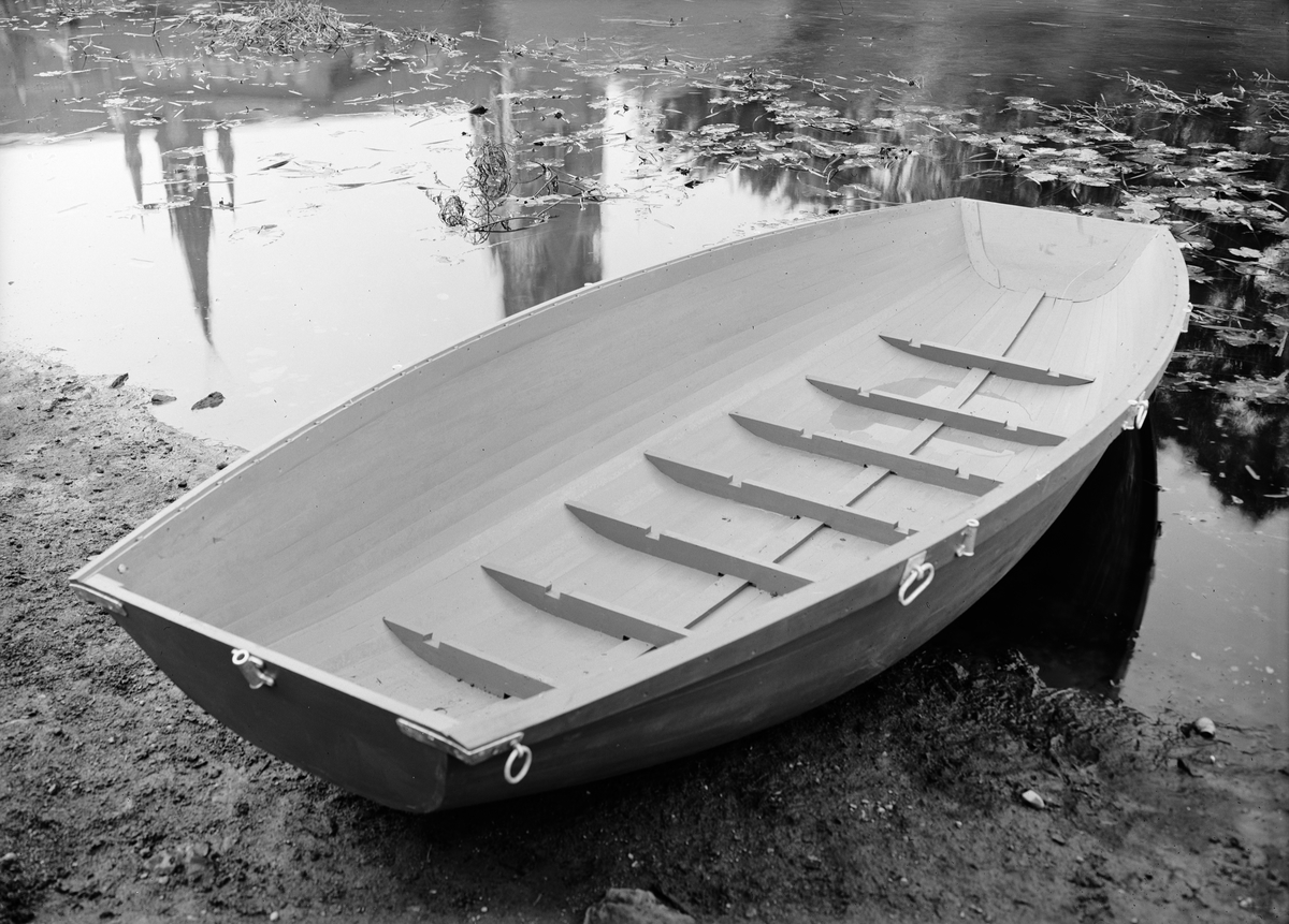 Sannolikt pontonbåt tillverkad av AB Båtpatent, Fyrisåns strand