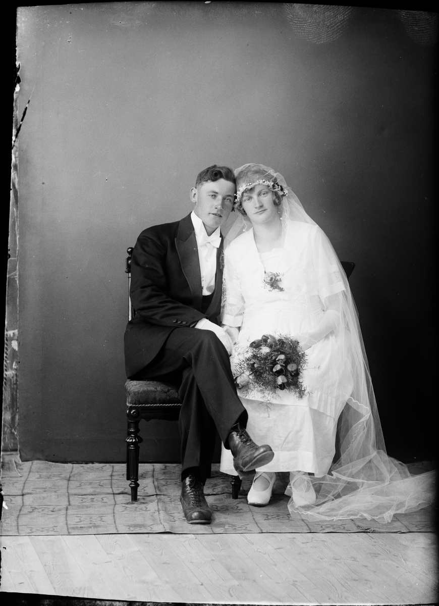 Brudparet Wallin från Lysta, Hökhuvuds socken, Uppland 1922