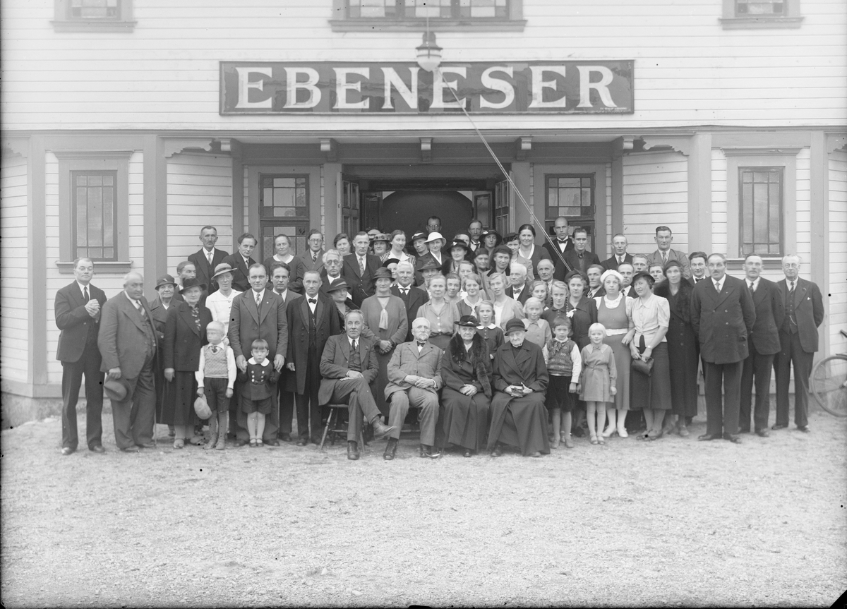 Församlingen framför baptistkyrkan Ebeneser, Östhammar, Uppland