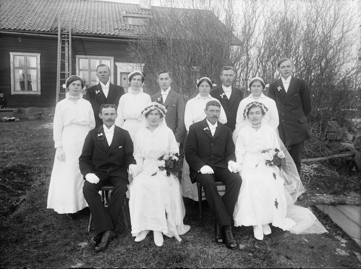 Dubbelbröllop - brudpar med tärnor och marskalkar, Östhammar, Uppland