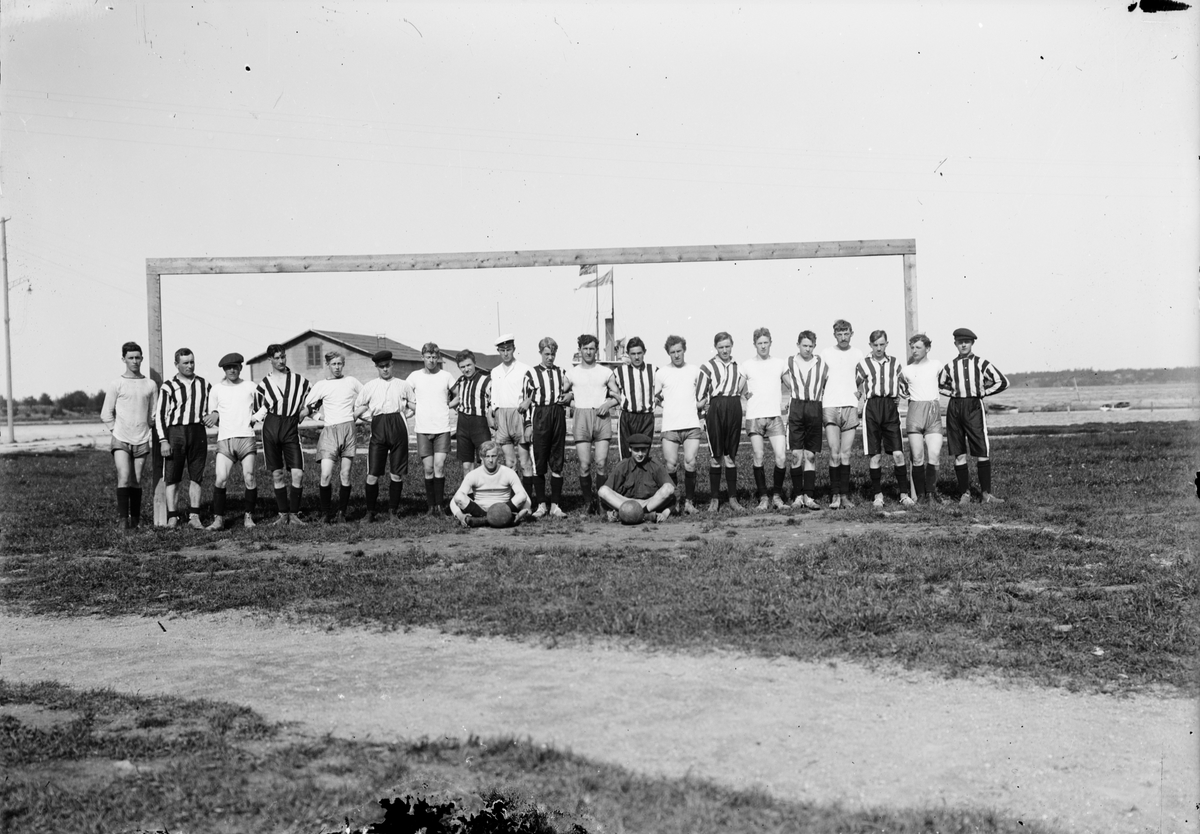 Fotbollsmatch mellan Östhammar och Gimo på Sjötorget i Östhammar, Uppland 1918