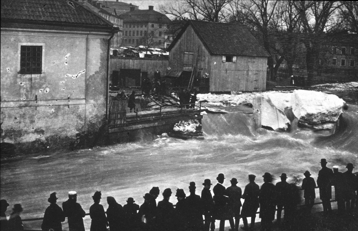 Reprofotografi - "Svartbäcksgubbar" i Kvarnfallet vid Akademikvarnen, kvarteret Holmen, Uppsala 1880 - 1890-tal