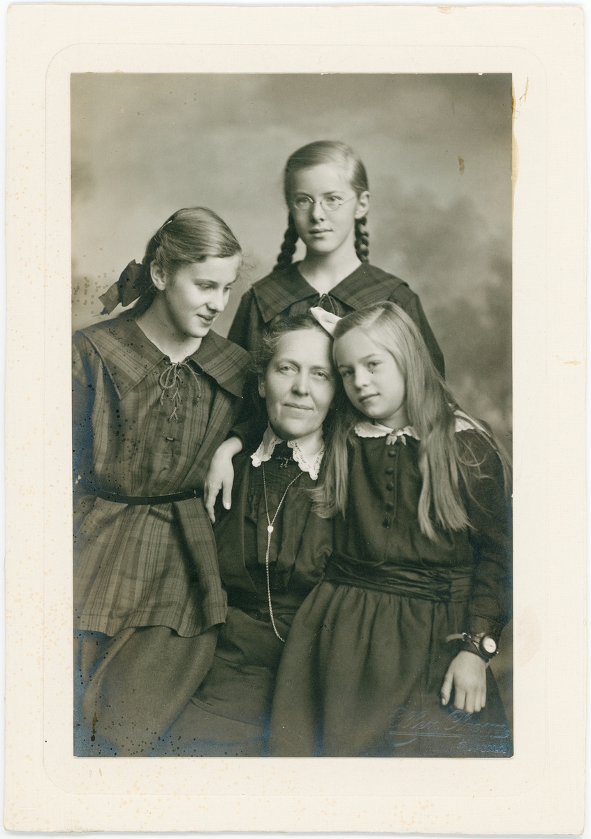 Kabinettsfotografi - Maria N med Elisabet, Birgit och Margareta, Uppsala 1918