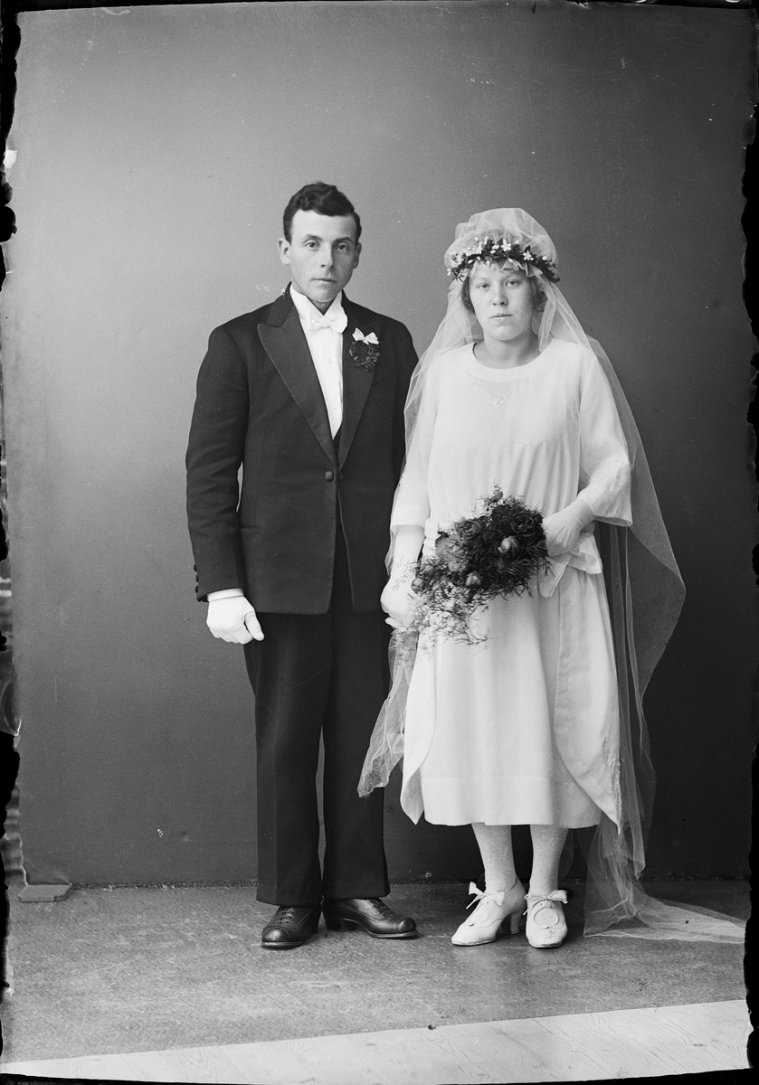 Brudparet Wallin från Väddika, Hökhuvud socken, Uppland 1923
