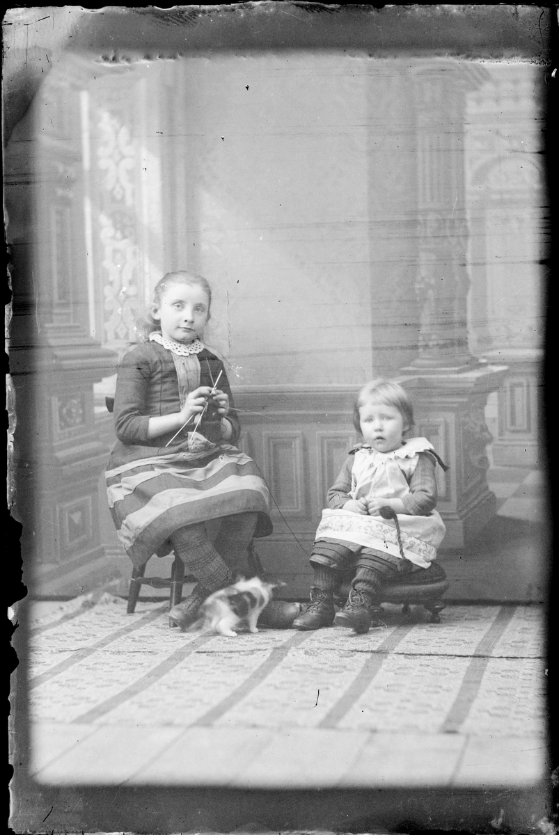 Ateljéporträtt - två flickor, Östhammar, Uppland